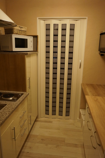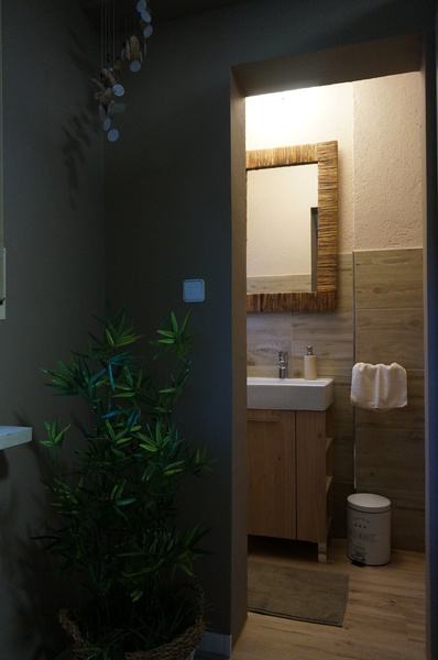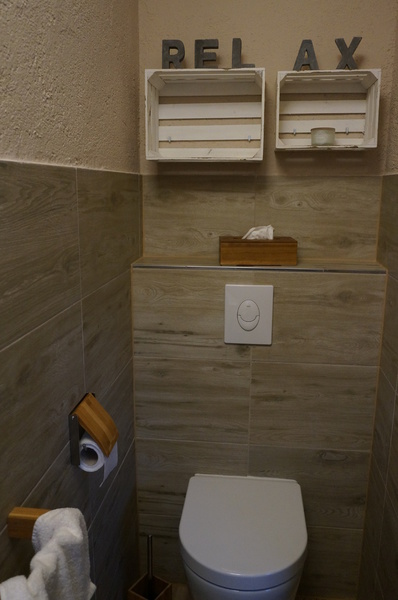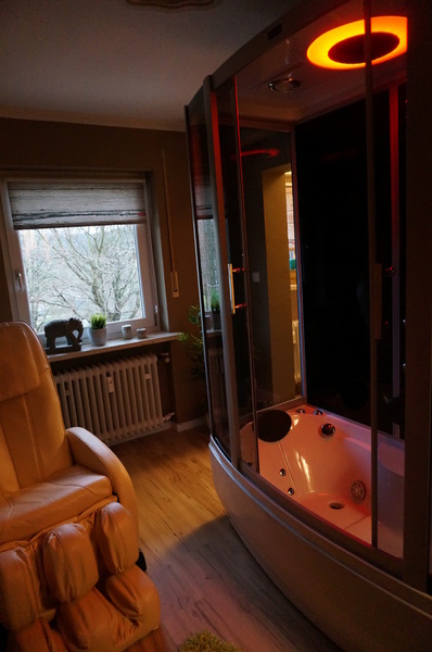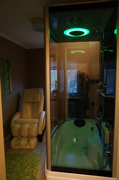 Sie müssen auf keinerlei modernen Komfort verzichten. Die Wohnung verfügt über ein eigenes Bad mit großer Dampfdusche mit intergrierten Whirlpool sowie Shiatsu Massagesessel und separates WC mit
