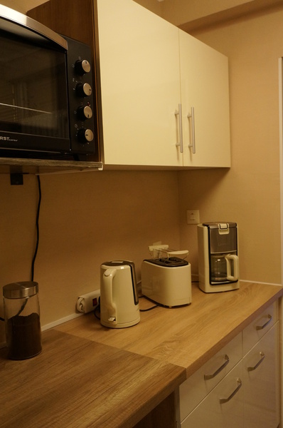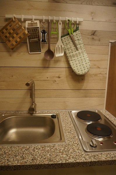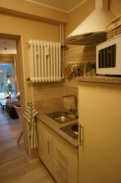 Verfügung gestellten Bioethanol betrieben werden kann. WLAN gehört ebenfalls zur Ausstattung. Die Küche ist mit Backofen, Microwelle, 2 Plattenkochfeld, Kaffeemaschine, Wasserkocher, Toaster